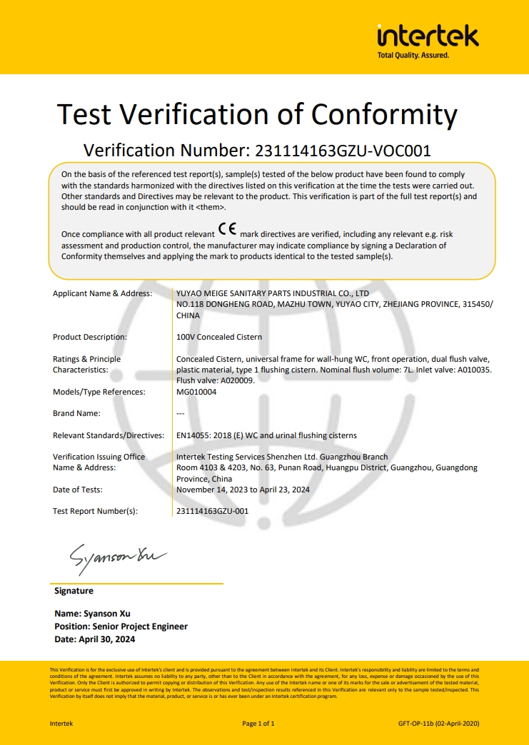 After years of precipitation,in 2008, Meige formally entered the intelligent sanitaryware industry, with a total investment of about 10 million RMB to build an intelligent sanitaryware production workshop, with an annual production capacity of 200,000 sets of intelligent toilet seat covers. In 2016, Meige formally set up the Intelligent Sanitaryware Division. In 2018, Meige expanded the intelligent toilet production line with an annual production capacity of about 500,000 sets,and with manufacturing capacity of more than 8 million sets of toilet tank fittings. The intelligent water-saving products have become a professional cooperative supply base for domestic and foreign OEM / ODM clients. The company continues to invest in product research and development, design innovation to provide customers with better quality products and services.